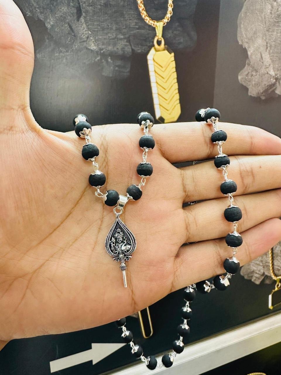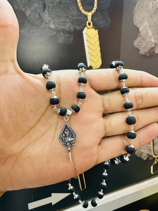 Be the first to review “8mm silver plated karungali maalai plus vel dollar”